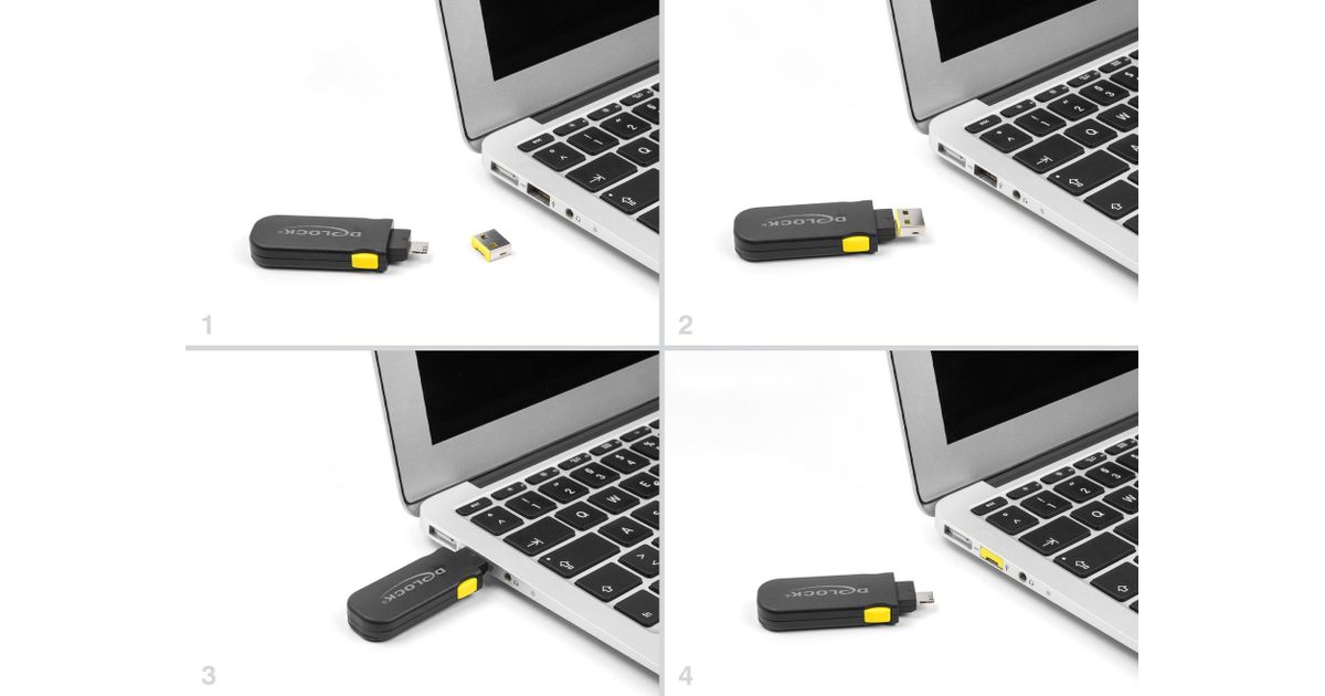 Delock USB Port Blocker Set für USB Typ-A Buchse 4 Stück + Verschlusswerkzeug (22031)