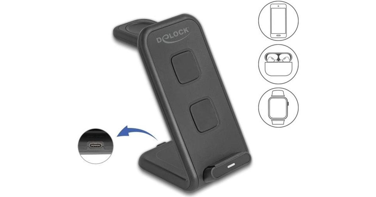 Delock Wireless Charger 3 in 1 mit 2 Ladespulen 5 W 5 15 (66941)