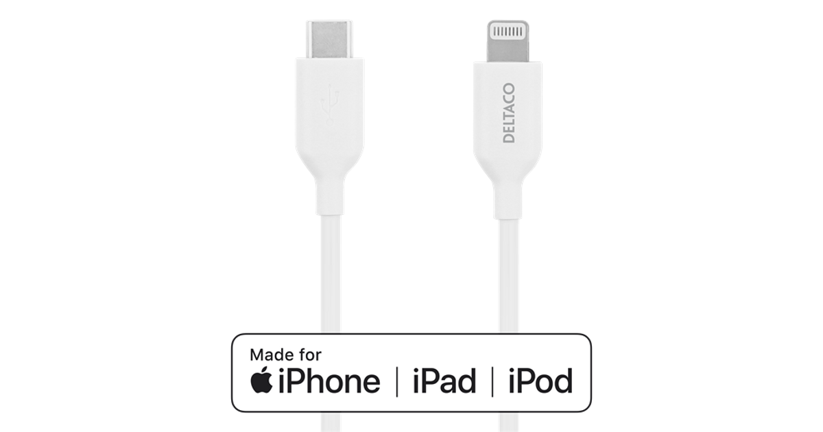 Deltaco IPLH-452, 2 m, USB C, Lightning, USB 2.0, Valge