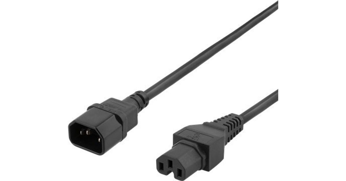 Deltaco pikendusjuhe IEC C15, IEC C14 toitekaabel, 1m, must