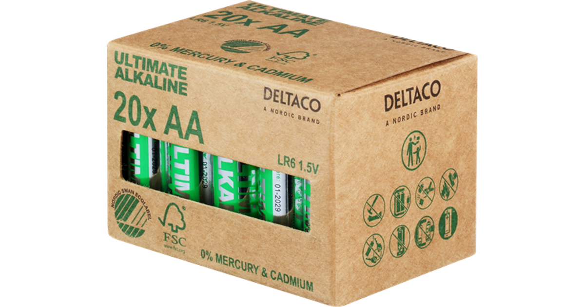 Deltaco Ultimate Alkaline AA, Ühekordne patarei, AA, Aluseline, 1,5 V, 20 tk, Cd (kaadmium), Hg (elavhõbe), Pb (plii)