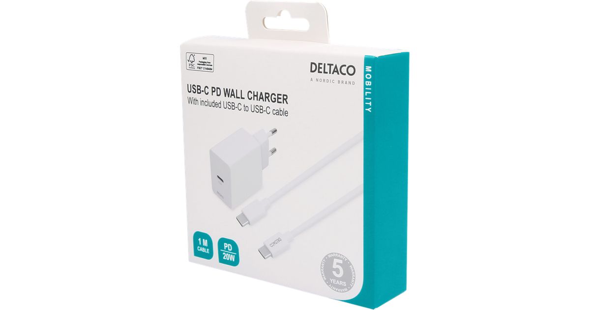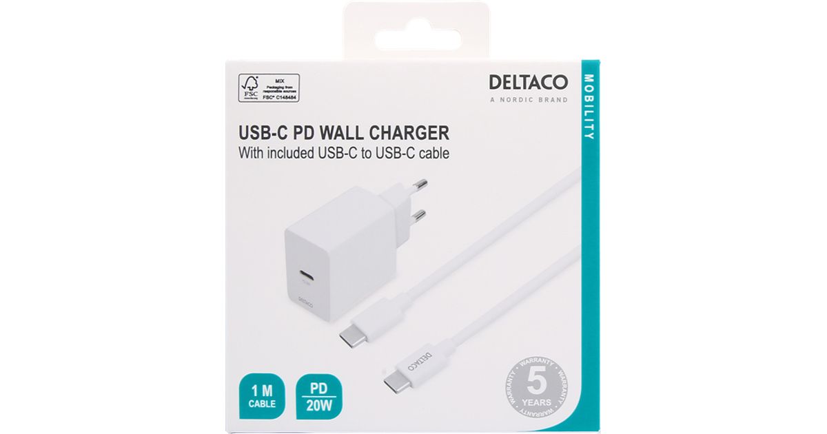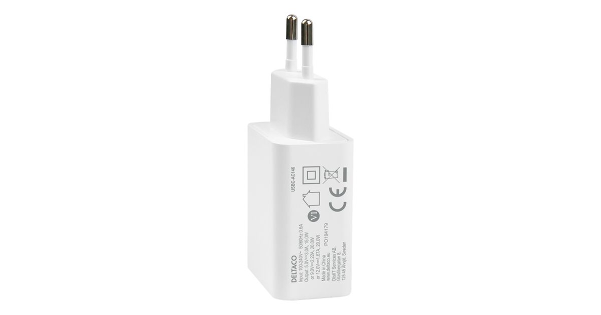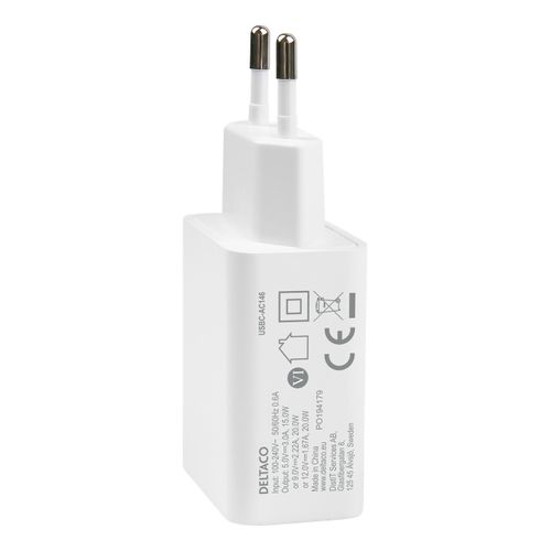 Deltaco USBC-AC146 mobiilseadme laadija Valge Hoonesisene