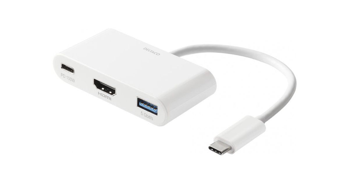 Deltaco USBC-HDMI23, Juhtmega ühendatud, USB 3.2 Gen 1 (3.1 Gen 1) Type-C, 100 W, Valge