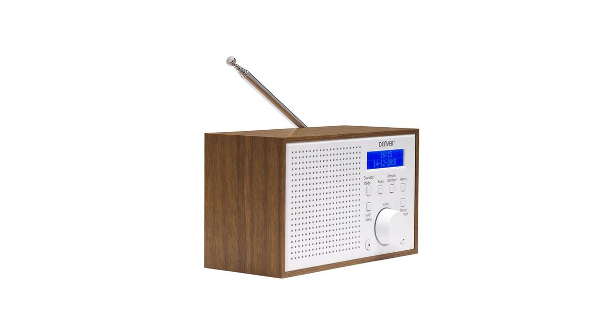 Denver DAB-46WHITE, Internet, Analoog ja digitaal, DAB+, FM, 2 W, LCD, Pruun, Valge