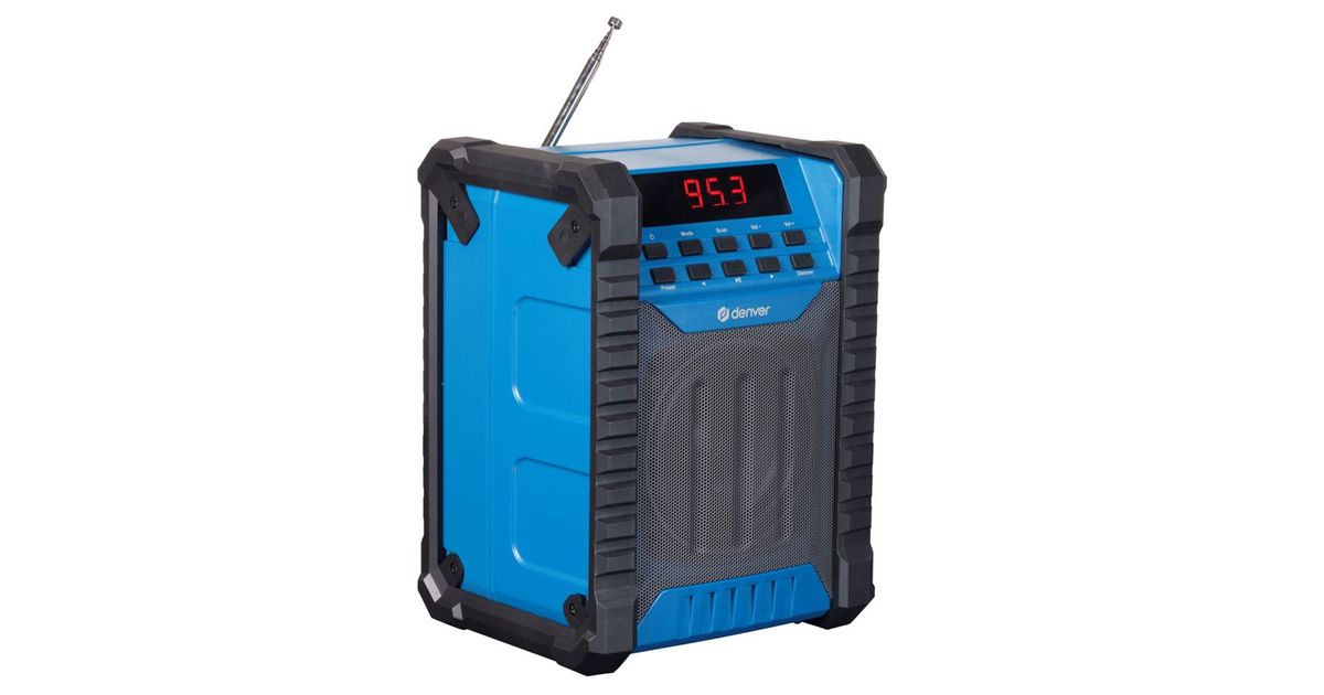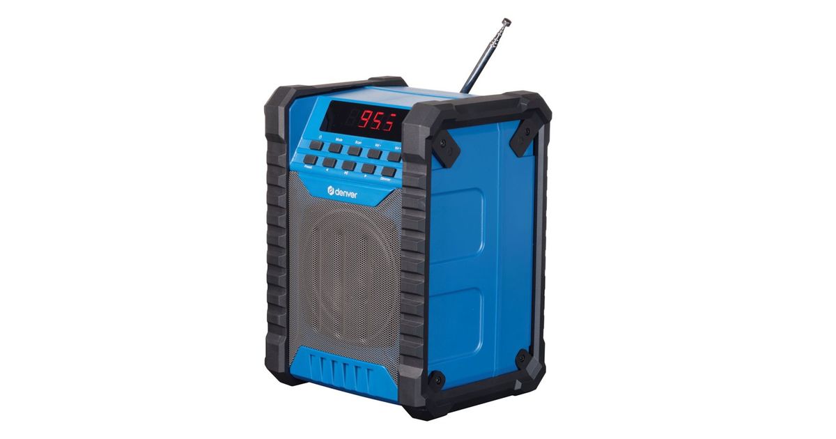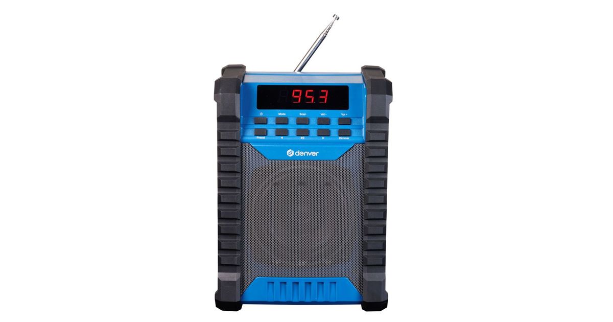 Discover the DENVER WRD-60 construction site radio - your perfect companion on the construction site! With FM and Bluetooth functionality for a seamless connection to your devices. The LCD display enables easy navigation, while the AUX input and USB Type-C port offer versatile connection options. With the built-in rechargeable lithium battery and up to 5 hours of playtime, you're always ready to go. Enjoy powerful sound with 100 watts maximum power and IP54 splash protection. Experience versatility and performance - with the DENVER WRD-60 construction site radio.