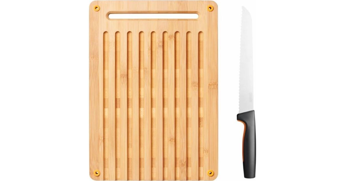 Deska do krojenia Fiskars z nożem drewniana