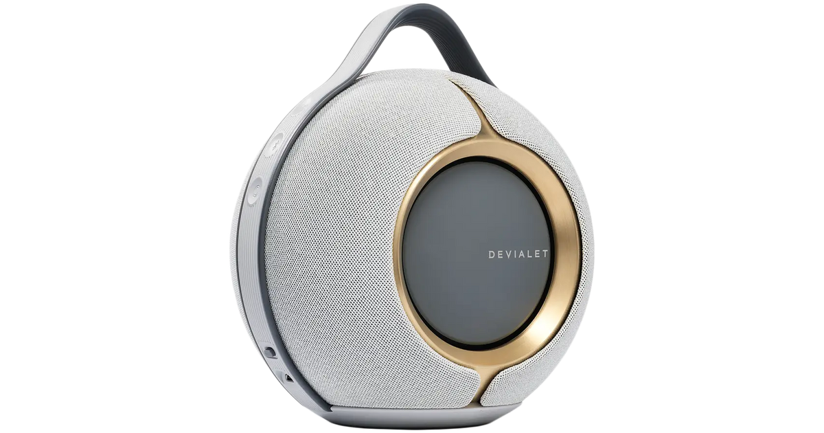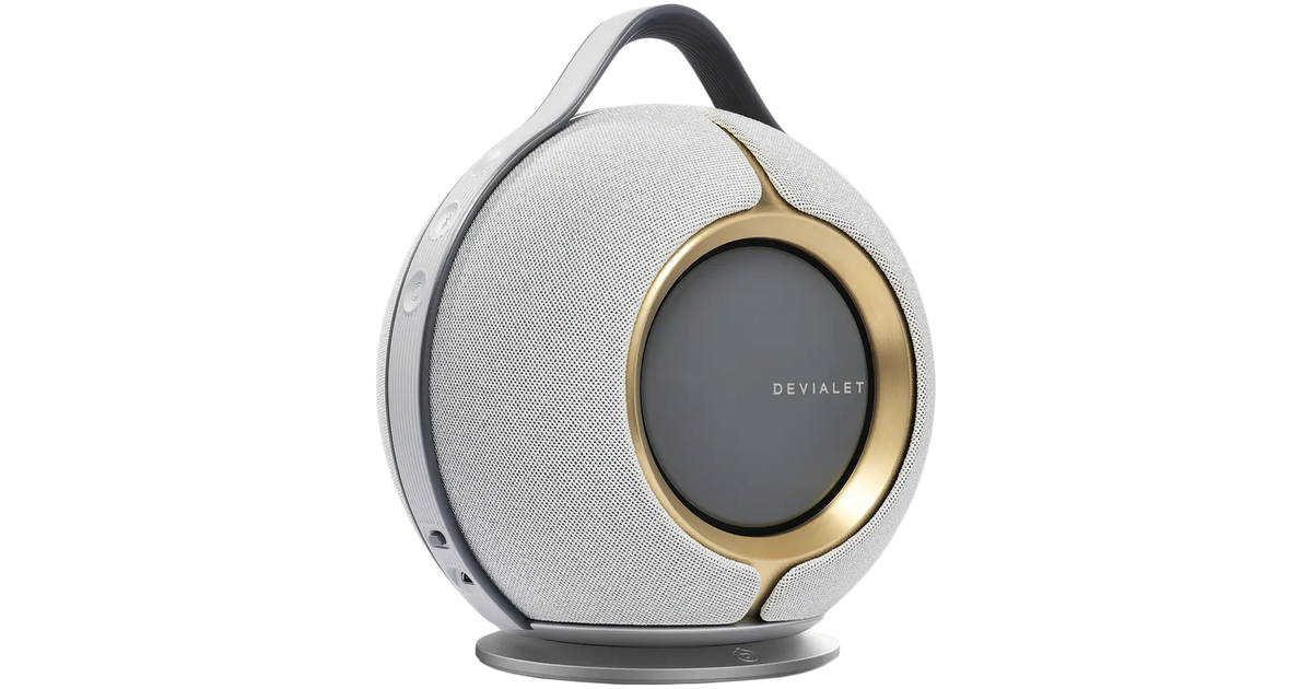 Thanks to its adaptive cross stereo, Devialet Mania portable speaker offers a soundstage that morphs to whatever space it's in.