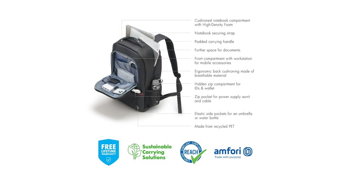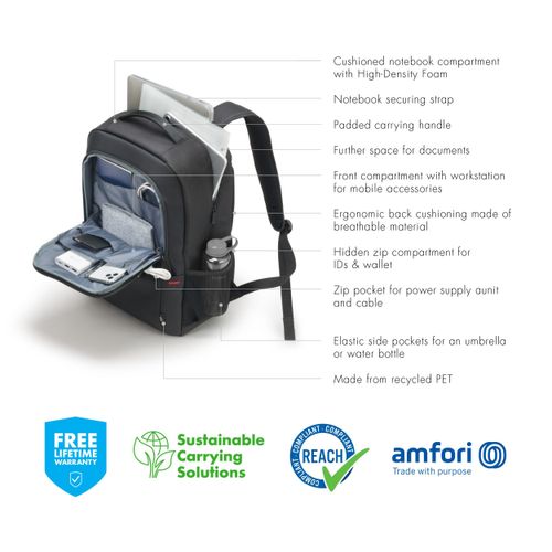 Dicota Eco Backpack Plus BASE, Seljakott, 39,6 cm (15.6"), Õlarihm, 850 g