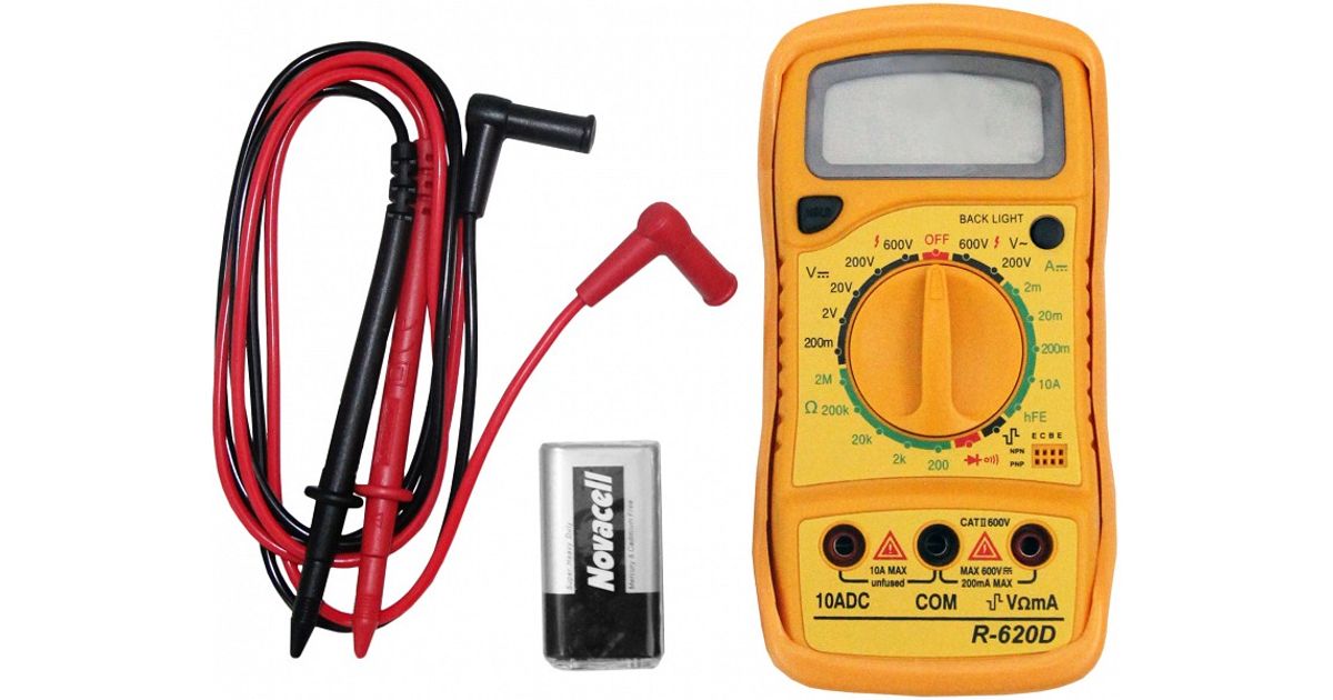 Kummikattega. ümarate nurkadega plastkorpus - ergonoomiline käes hoida. Põrutuskindel. Helisignaal. ”Memory” näidumälu fikseerimise nupp. Kõik skaalad kaitstud st puudub ”läbipõletamise” oht! ”Over range” funktsioon kui skaala mõõteulatus on liiga väike või suur (1 või -1). Pöördlülitil paremaks visualiseerimiseks värviskaala.Tehniline info:DC alalispinge 200 mV-600 VAC vahelduvpinge 20 V-600 VDC alalisvool 200 mA-10 AΩ takistus 200-20M ΩDiooditestTransistori test hFE