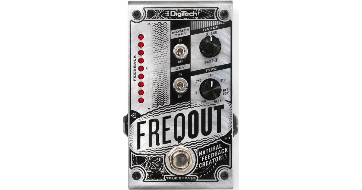The DigiTech FreqOut Natural Feedback Creator allows you to get sweet, natural feedback at any volume, with or without distortion. The FreqOut is perfect for situations where volume must be controlled like in the studio, with in ear monitors, or low-volume performance and practice. However, the FreqOut can also be used at gig volume to focus out-of-control feedback on a preferred harmonic at any stage position. The FreqOut has adjustable feedback Onset (delay before feedback begins), Gain (feedback level to balance with your dry signal), Dry On/Off, latching or momentary operation, true bypass, and a rugged road-tough steel chassis. The FreqOut uses a 9VDC power supply to easily integrate into your existing pedalboard. Features Natural Feedback at any level with or without distortion, Onset Delay and Level balance controls, 7 Harmonic Feedback types, Dry Defeat, Momentary/Latching modes, True Bypass. Dimensions: 121 x 73 x 45 mm. Weight: 370 g.