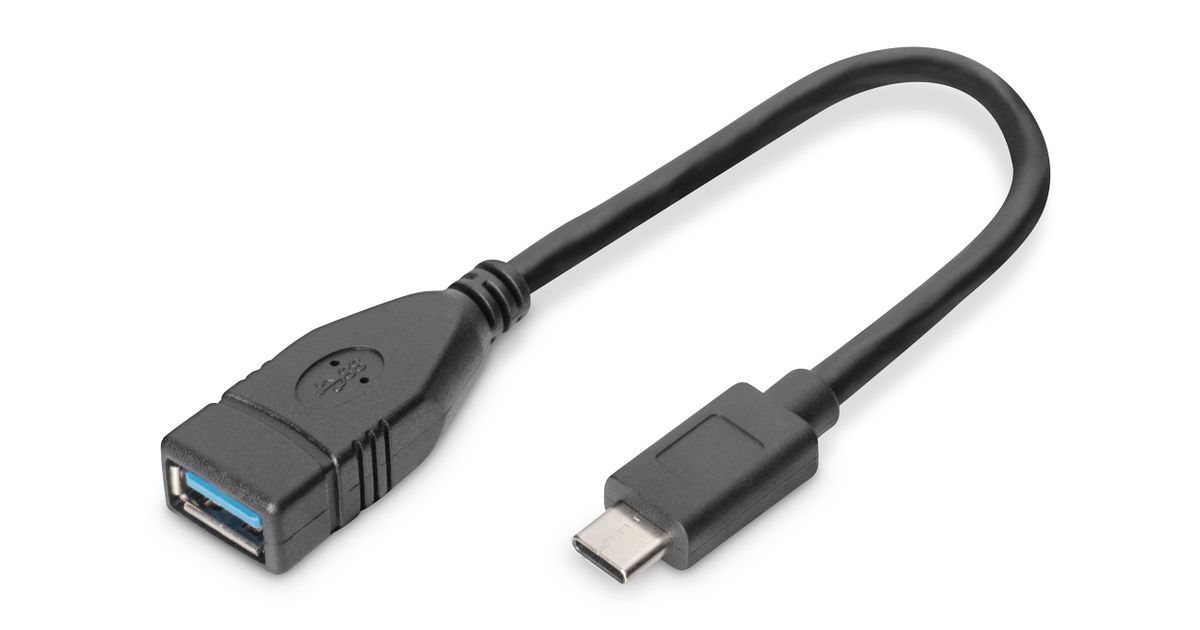 Digitus 0.15m USB C - A, 0,15 m, USB C, USB A, USB 3.2 Gen 1 (3.1 Gen 1), Meessoost/naissoost, Must