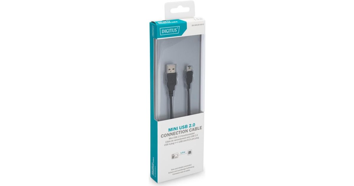 Digitus 1m, USB2.0-A/USB2.0 mini-B, 1 m, USB A, Mini-USB B, USB 2.0, Meessoost/meessoost, Must