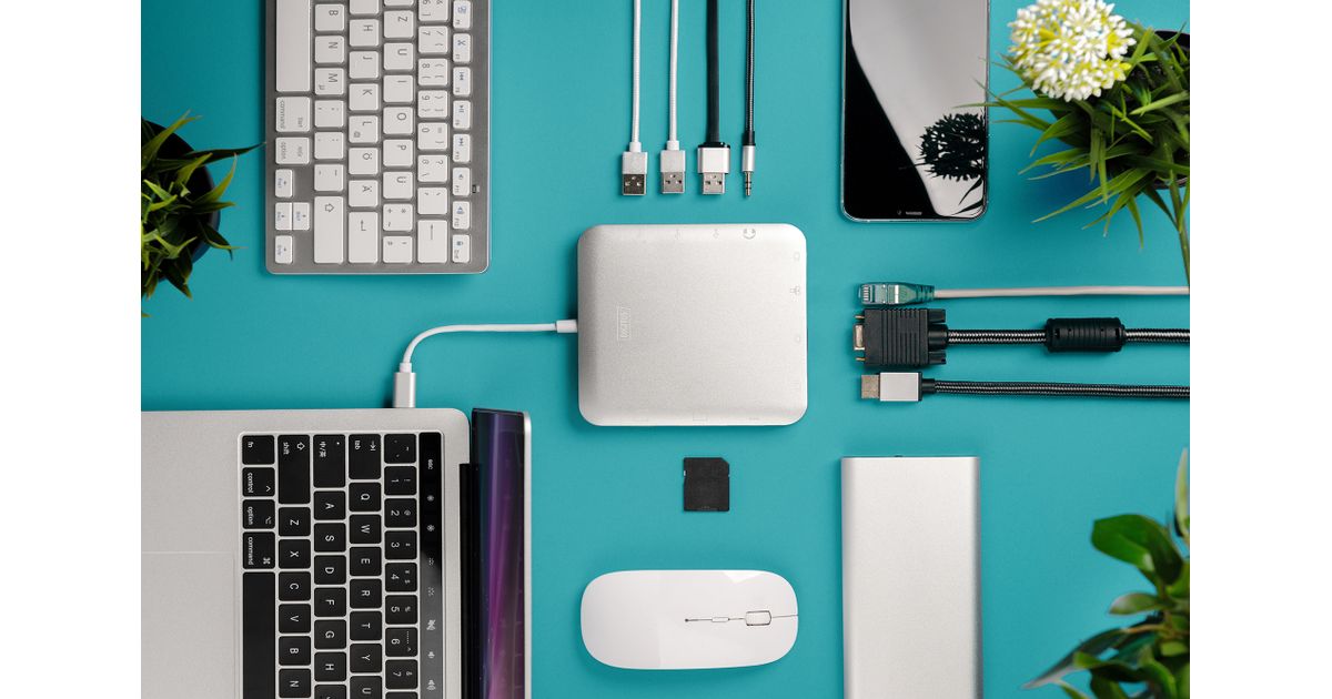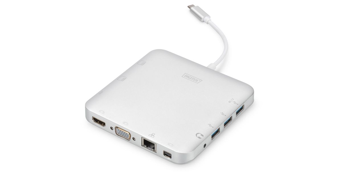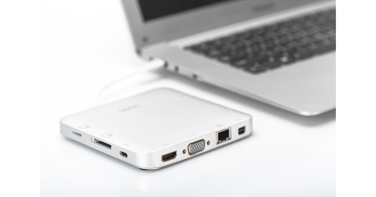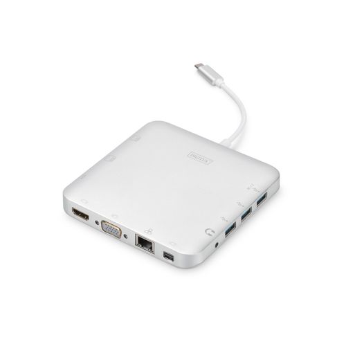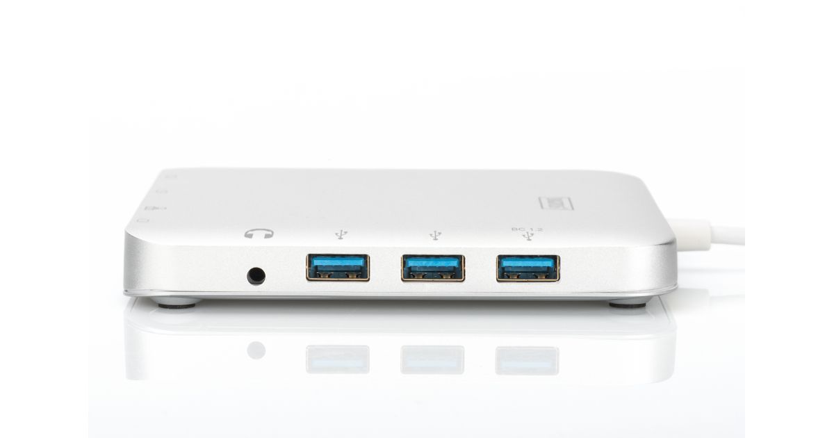 Digitus DA-70863, Juhtmega ühendatud, USB 3.2 Gen 2 (3.1 Gen 2) Type-C, 60 W, 3,5 mm, Hõbe, MMC, MicroSD (TransFlash), SD, SDHC, SDXC