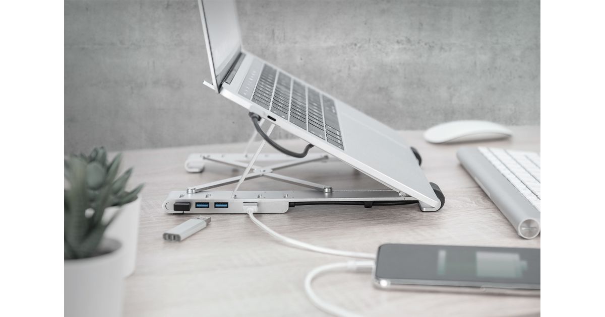 Digitus DA-90424, Sülearvuti alus, Hõbe, Alumiinium, 25,4 cm (10"), 43,2 cm (17"), 15 - 36°