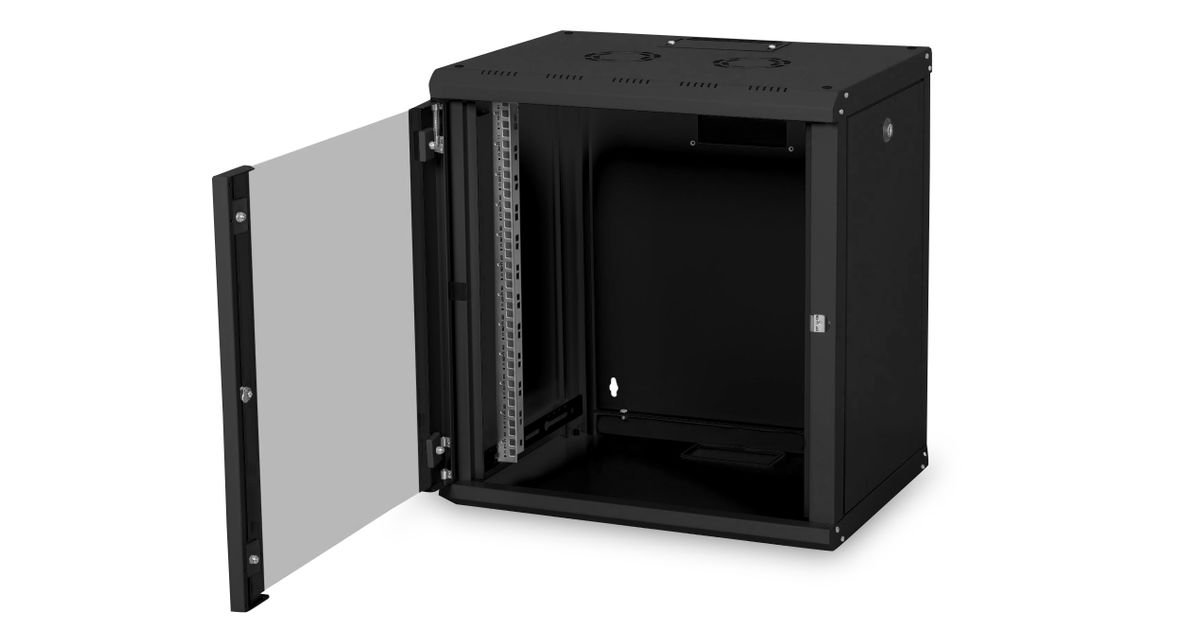 Digitus DN-19 12-U-SW, Seinale monteeritav riiul, 12U, 100 kg, Lukk, Must