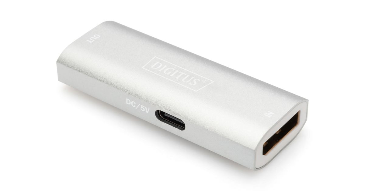 Digitus DS-55524, 7680 x 4320 pikslit, AV repiiter, 30 m, Juhtmega ühendatud, Hõbe