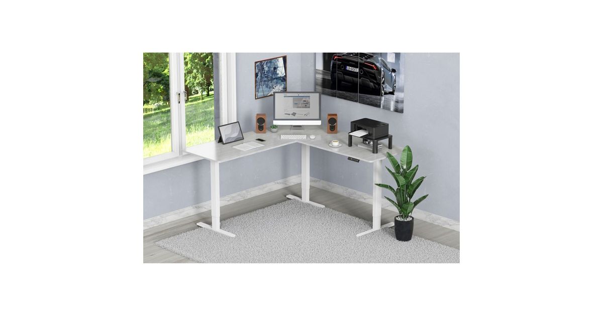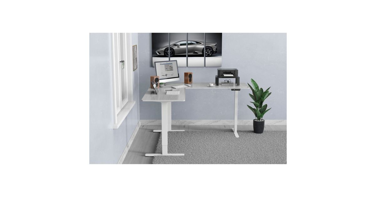 DIGITUS Electrically height-adjust. Table frame. L-shape, Triple-M, 2-St, white