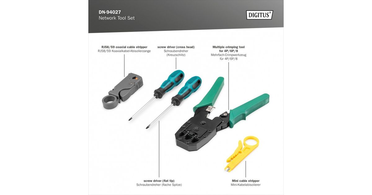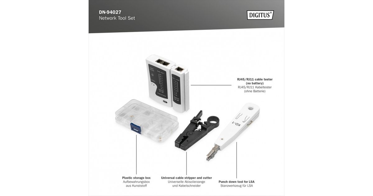 DIGITUS Network Tool Set LAN Tester Crimping Cut and Stripping Punch Down Bag (DN-94027)
