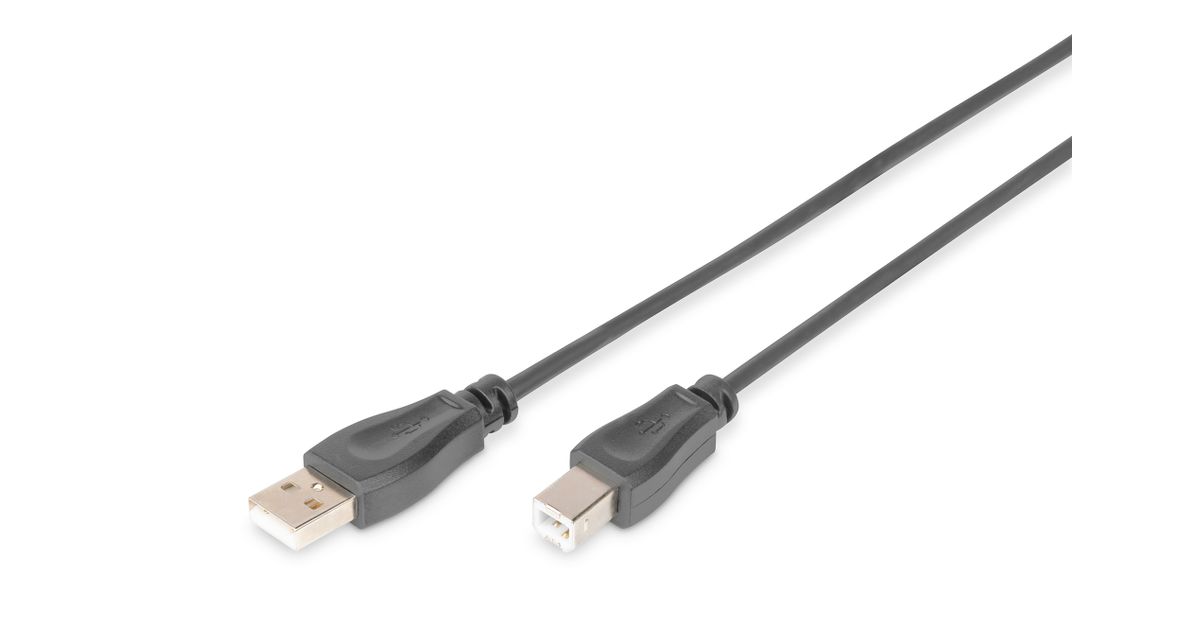 Digitus USB 2.0 A/B, 0.5m, 0,5 m, USB A, USB B, USB 2.0, Meessoost/meessoost, Must
