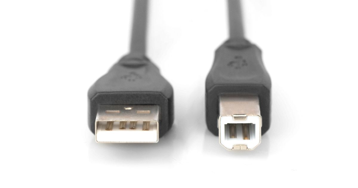 Digitus USB 2.0 A/B, 0.5m USB-kaabel 0,5 m USB A USB B Must
