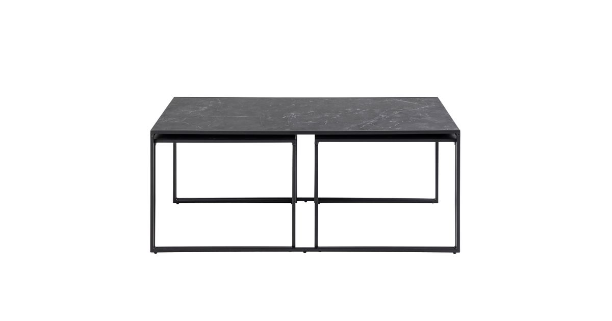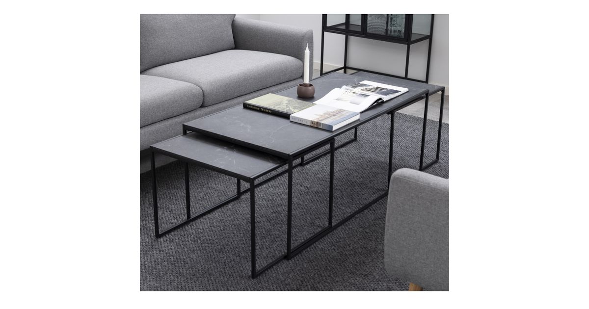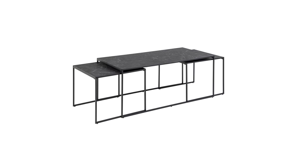 Diivanilauad 3tk INFINITY, 120x60xH48cm; 56x56xH44cm; 56x56xH44cm, lauaplaat: melamiin, matt must marmor, raam/jalad: matt must metall