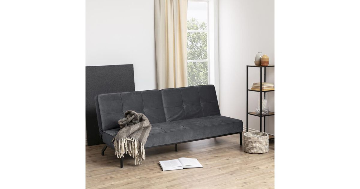 Diivanvoodi PERUGIA 198x95x87cm, materjal: samet kangas, värvus: tumehall, jalad: must metall - Diivanid - Elutuba - Mööbel - Kodu - MT Shop