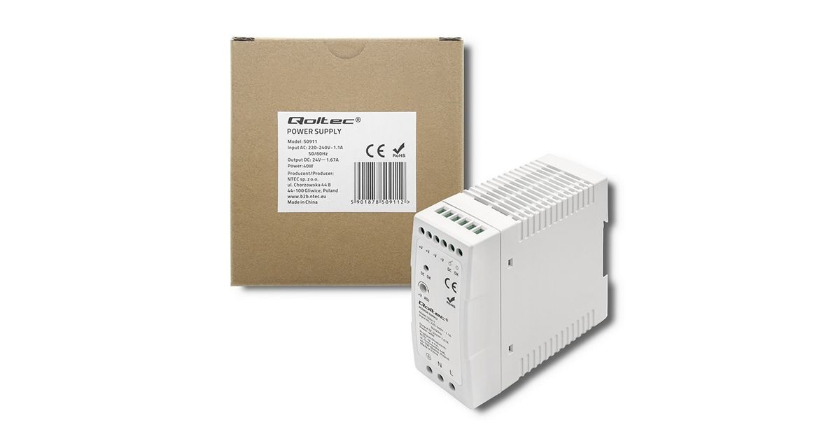 Qoltec DIN rail power supplies are a useful component for automation systems, machine control, lighting technology and industrial electronics where the size of the power equipment is important and adaptation to limited space is essential.