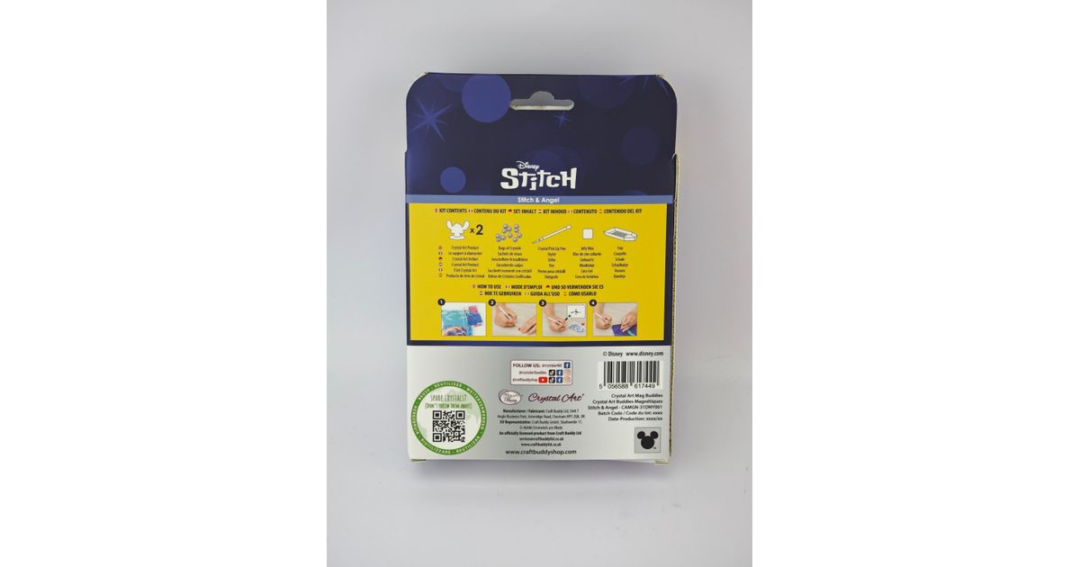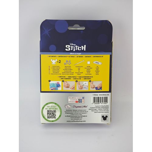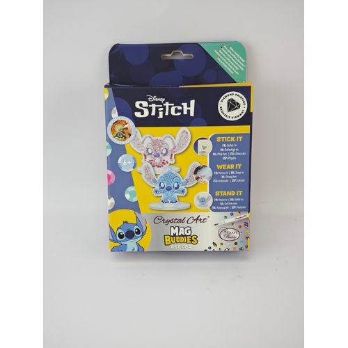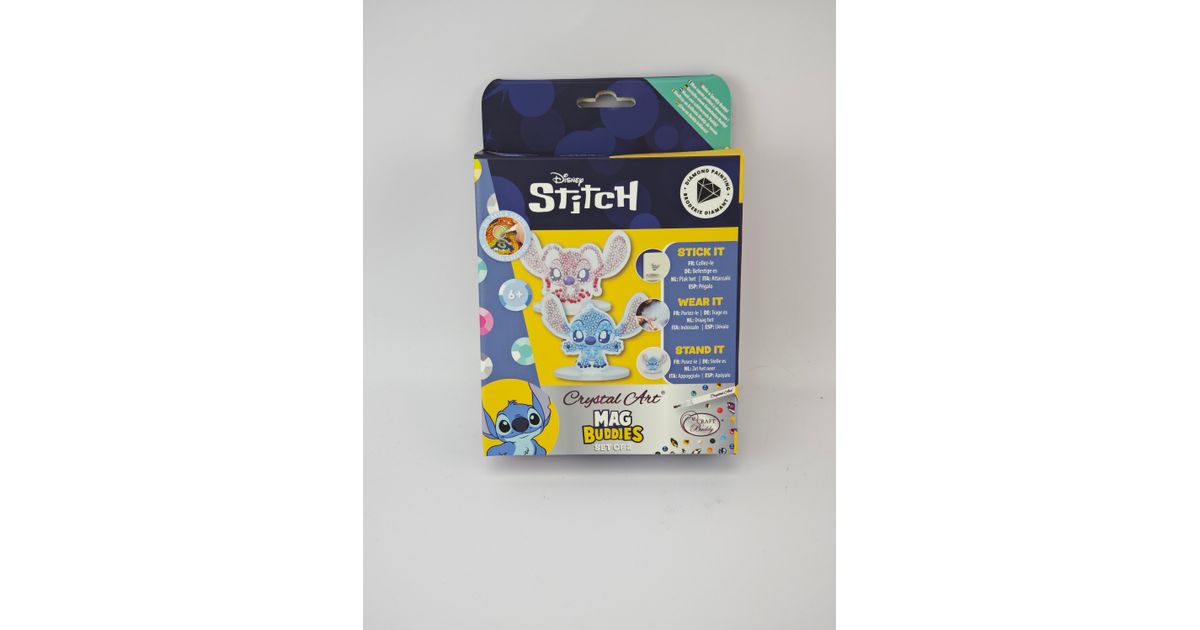 Stitch & Angel Crystal Art® Buddies komplekt on imearmas tee-ise kogumiskomplekt, ideaalne igas vanuses ja kogemusega loojatele – eriti algajatele ja noortele Stitchi fännidele. Komplektis on kaks eksklusiivset kujundust: Stitch ja Angel. Igal akrüülpeegliga Buddy-l on särav pind, mis püüab valgust. Kanna seda efektse aksessuaarina, aseta lauale või kinnita magnetiga näiteks külmkapile. MDF-figuuride sees on magnetid, mis võimaldavad neid kinnitada metallpindadele või isegi riietele. Iga 5 cm kõrgune kuju on varustatud eelkoodeeritud liimpinnaga ning komplekt sisaldab kõiki tööriistu – pliiats, vaha ja salv – alustamiseks.
