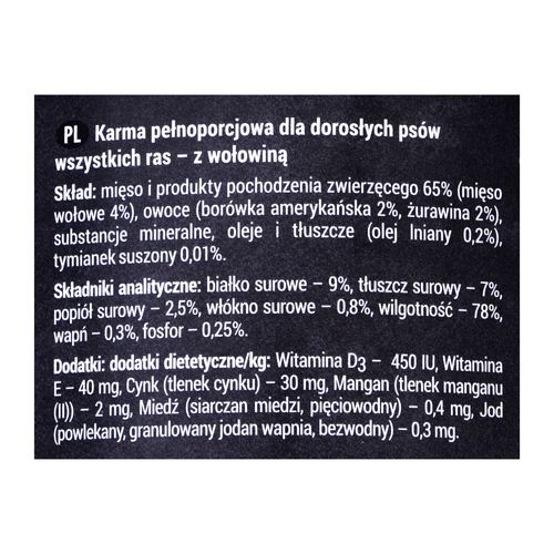 Dolina Noteci Rafi, Täiskasvanu, Kõik tõud, Väga suur (> 45 kg), Suur (26 - 44 kg), Keskmine (11 - 25 kg), Väike (5 - 10 kg), Väga väike (<4 kg), Veiseliha, 400 g