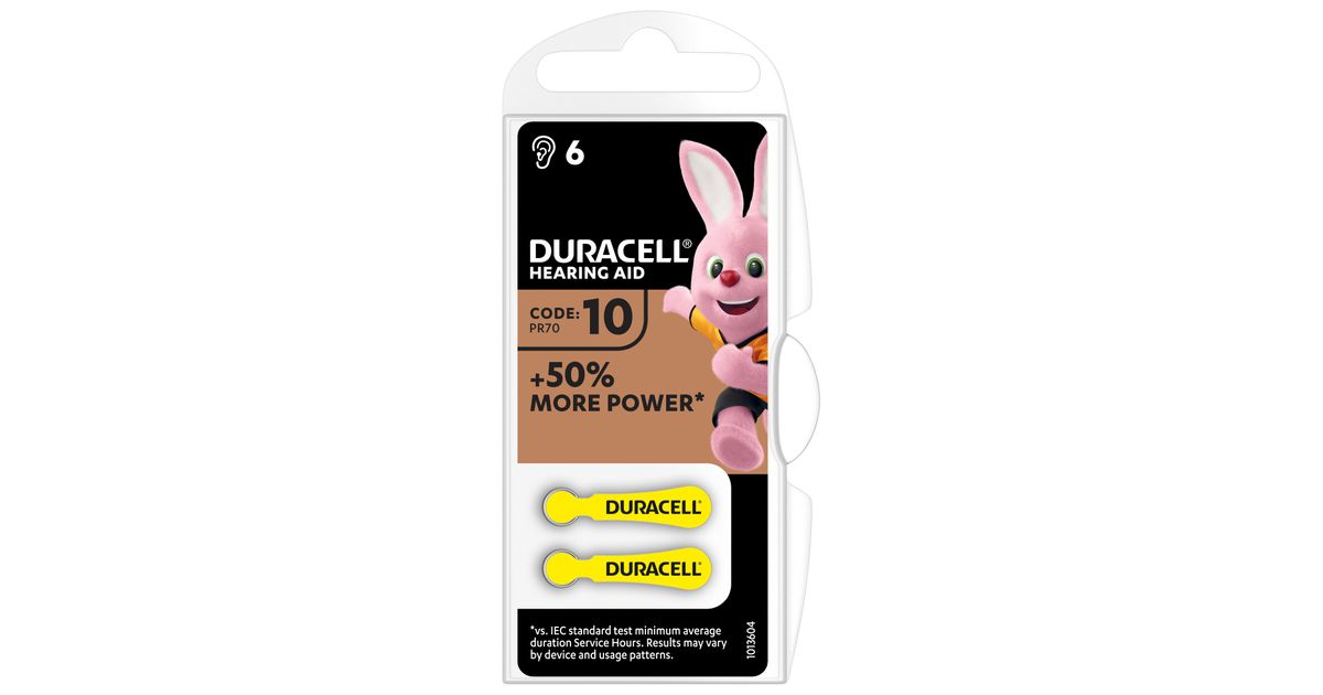 Duracell Hearing Aid 10, Ühekordne patarei, Tsinkõhk, 1,45 V, 6 tk, 100 mAh, 4 aasta(t)