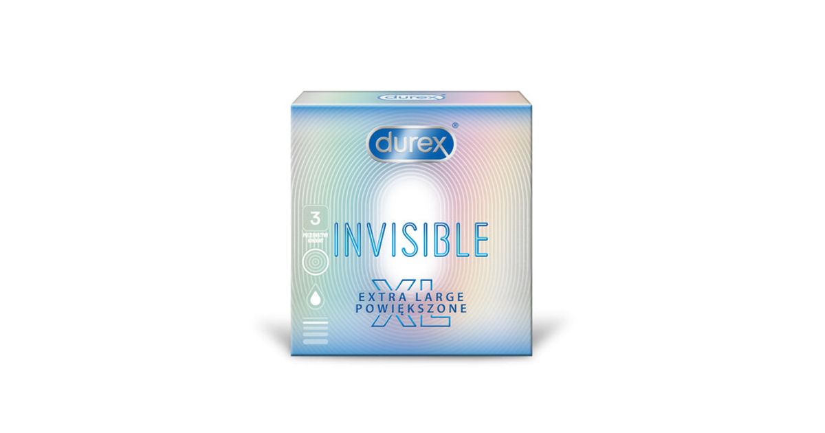 Durex Invisible XL, Meeste kondoom, Sile, Läbipaistev, Lateks, XL, Täiendav tunnetus