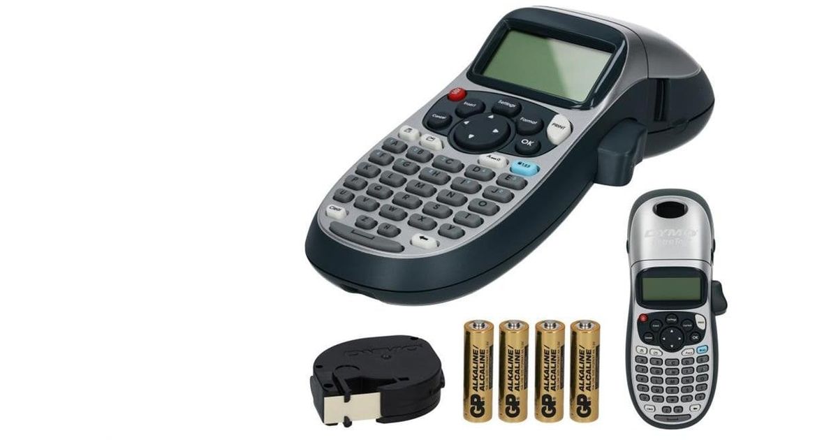 Dymo Letratag Printer LT-100H hõbe kodu jaoks, lapsed, kodukontor (LT-XR) 2174577 + DYMO LT 12mm lint + 4 AA akud