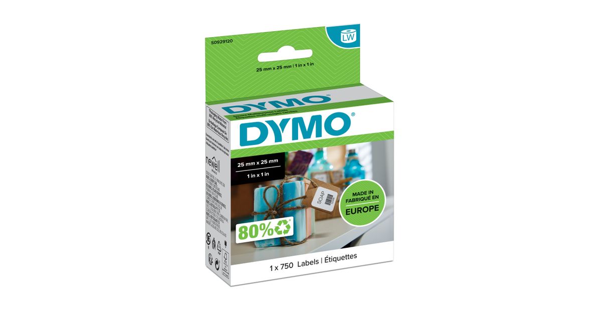 DYMO LW - Multi-Purpose Labels - 25 x 25 mm - S0929120, Valge, Iseliimuv printerisilt, Paber, Eemaldatav, Nelinurkne, LabelWriter