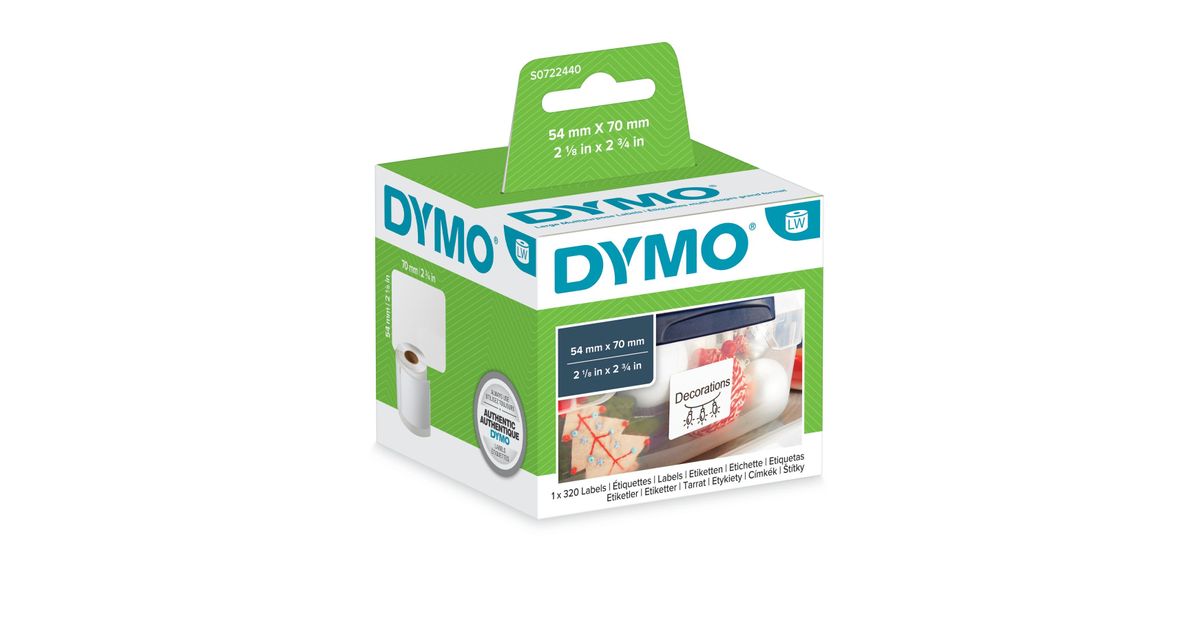DYMO LW - Multi-Purpose Labels - 54 x 70 mm - S0722440, Valge, Iseliimuv printerisilt, Paber, Püsifilter, LabelWriter, 5,4 cm