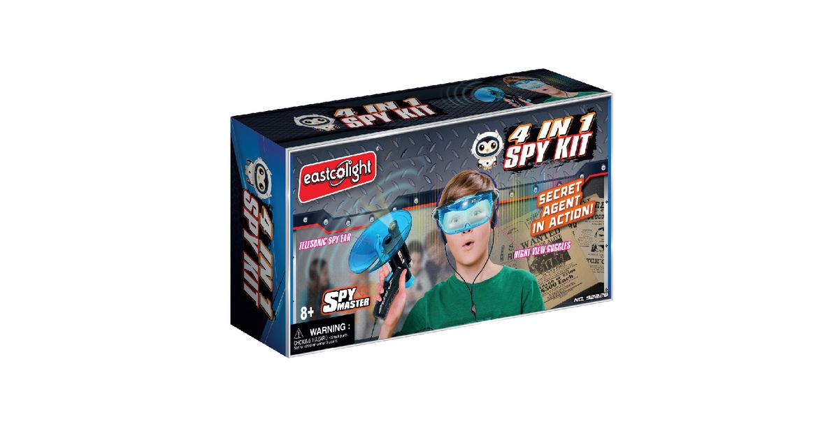 Astu spionaaži maailma meie 4-in-1 spioonikomplektiga - parim komplekt noortele detektiividele ja seikluste otsijatele! See kõrgtehnoloogiline varustuskomplekt võimaldab sul näha, kuulda ja uurida nagu tõeline salaagent. Telesonic Spy Ear: Kuula sosinat, metsloomi ja kaugeid helisid täiustatud helitehnoloogiaga. 6x kompaktne teleskoop: Vaadake oma ümbrust lähemalt. Sobib ideaalselt kaugseireks ja väliseiklusteks. Eemaldatav taskulamp: Navigeerige pimedas hõlpsasti. Öövaatlusprillid: Ümberpööratavad spiooniprillid automaatse öönägemistulega, mis tagavad kuni 7,6 m nähtavuse. Disainitud reguleeritava peapaela ja libisemisvastase padjaga maksimaalse mugavuse tagamiseks.
