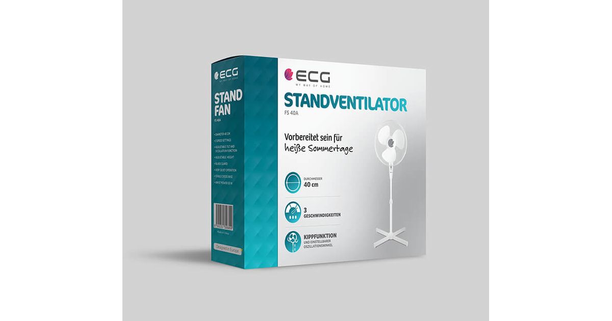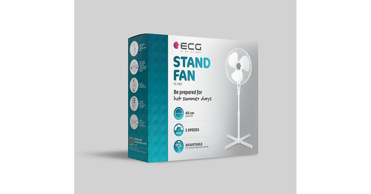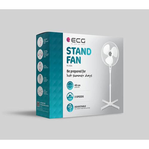 ECG FS 40A, Labadega majapidamisventilaator, Valge, Põrand, Metall, Plast, 67 dB, 40 cm
