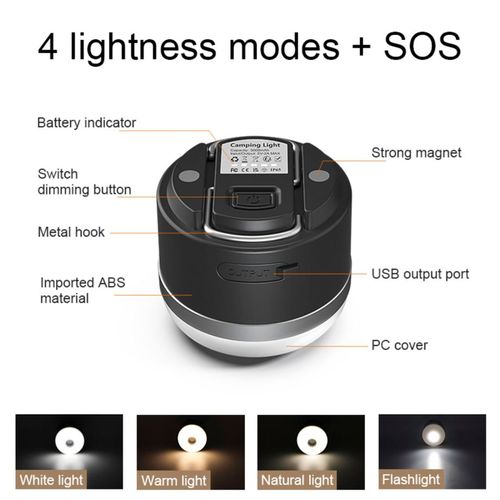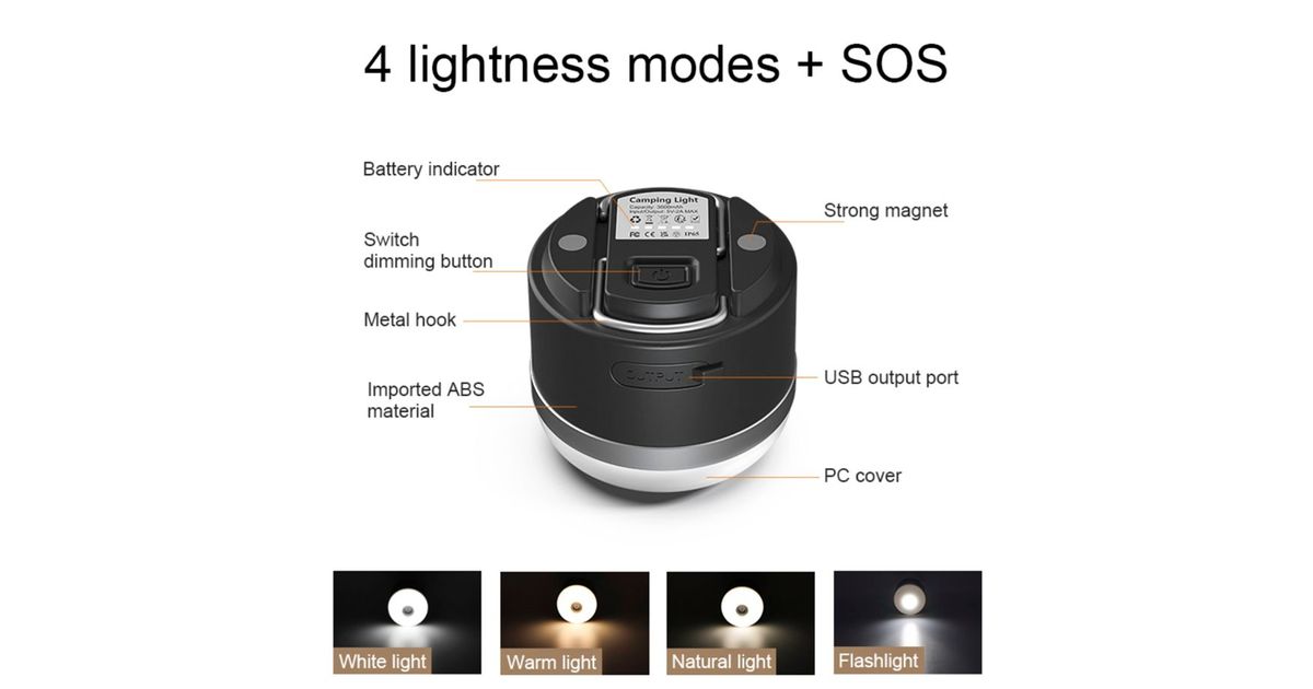 - Undimmed floodlight, dimmed floodlight, SOS floodlight, Off