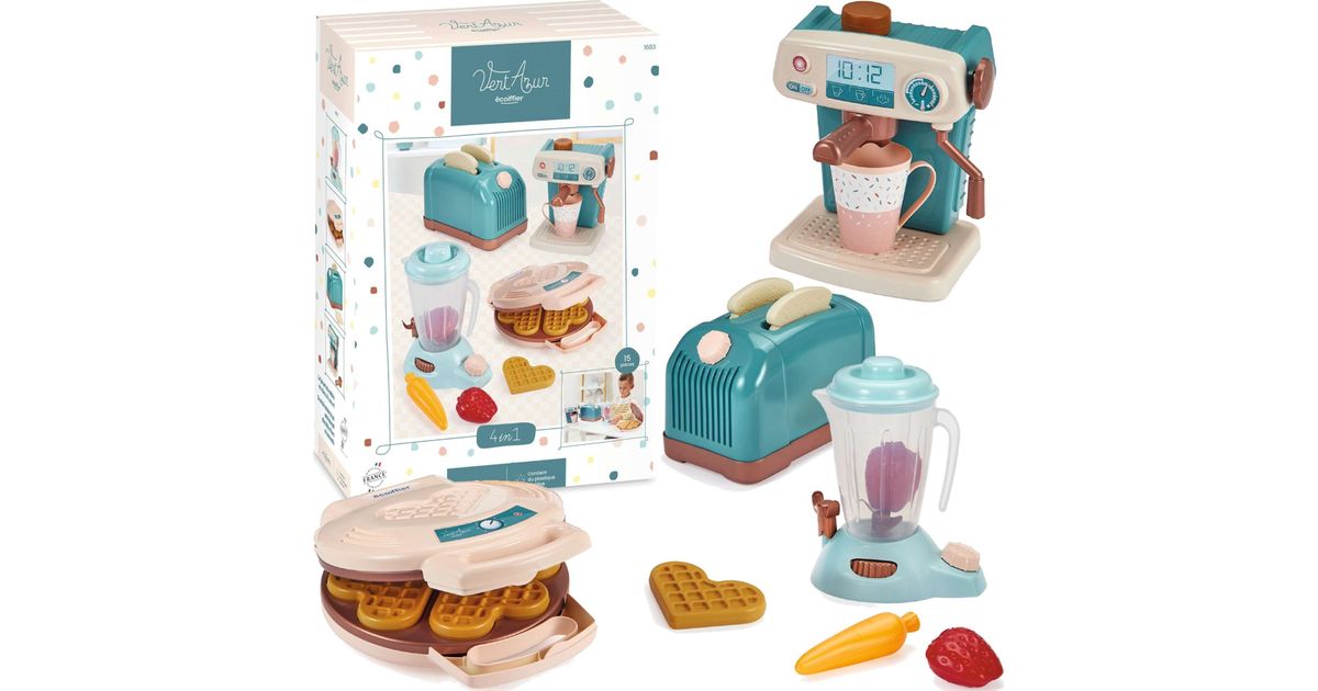 Ecoiffier laste köögikomplekt, röster, vahvlimasin, blender + tarvikud, 15 elementi