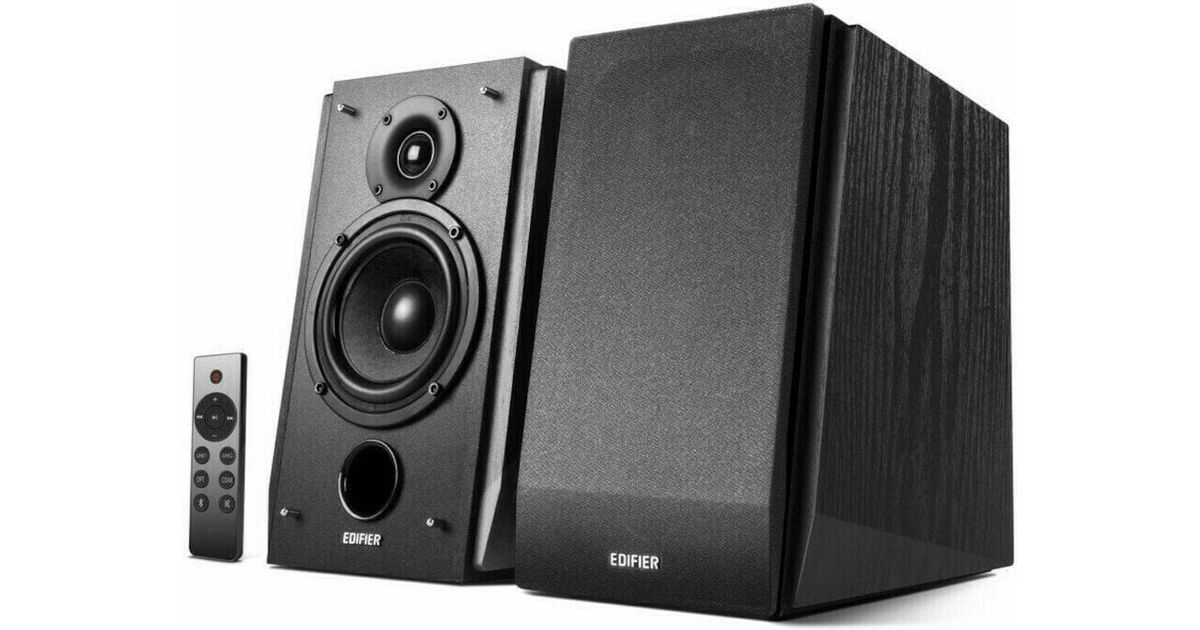 The Edifier R1855DB speakers come with a fully functional remote control for the bookshelf speaker set. You can adjust the volume, switch the inputs, mute the speakers all with your fingertips. Inputs are accessible with clear and concise functionality in addition to the manual. Bringing back old-school design with the latest technology, the Edifier R1855DB is an active 2.0 bookshelf speaker system with a 10-degree angle to accurately direct the sound towards you. The corner design directs the sound from the woofers directly to your ears, producing 70 watts of balanced quality melodies. The 4-inch midrange woofer speaker drivers provide rich lows, while the highs produce clear highs.