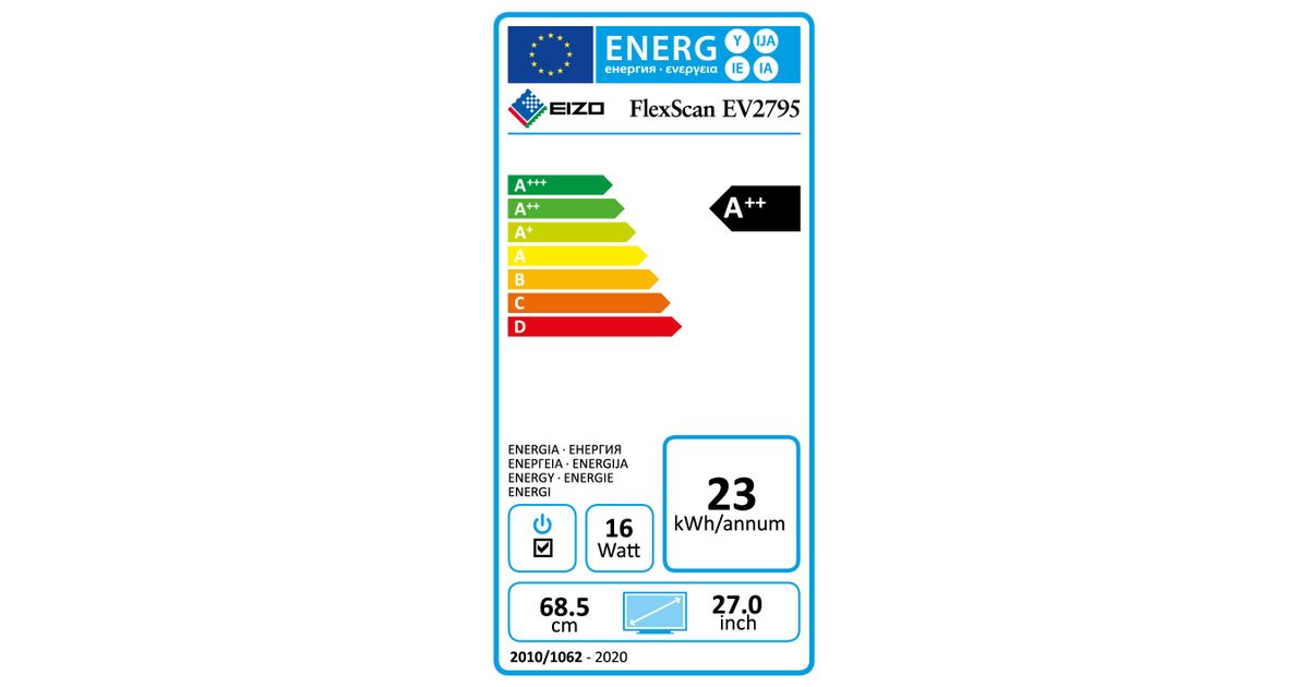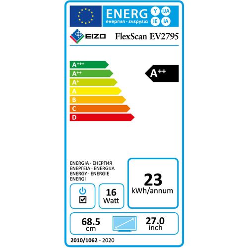 EIZO FlexScan EV2795-BK, 68,6 cm (27"), 2560 x 1440 pikslit, Quad HD, LED, 5 ms, Must