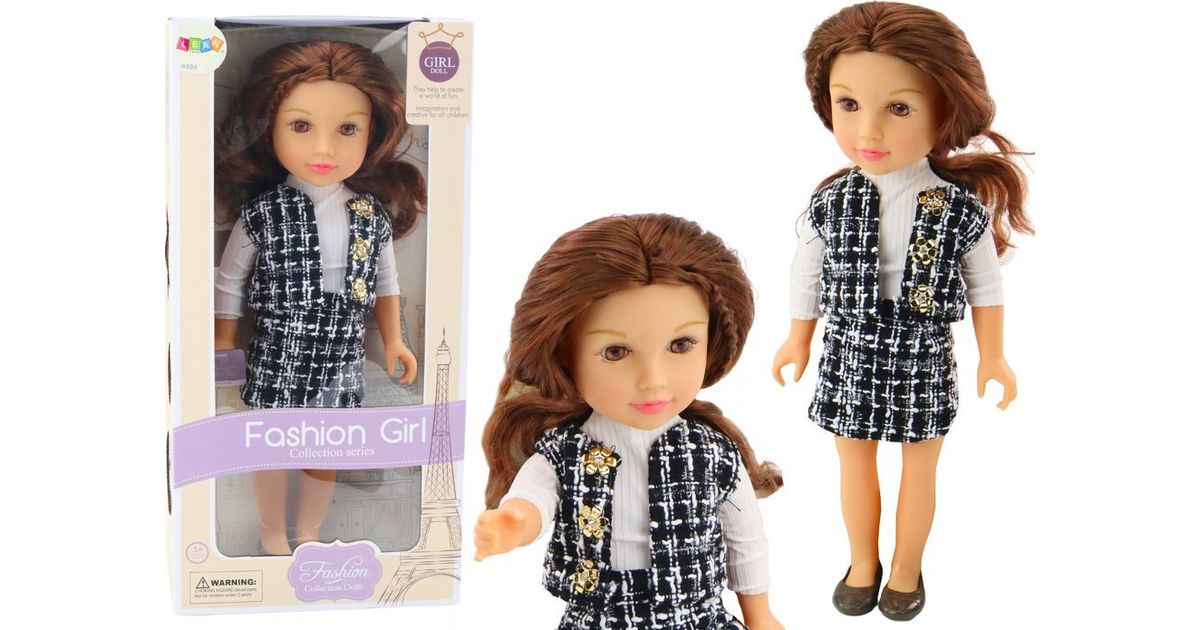 Elegantsete ruuduliste riietega LeanToys pruunide juustega nukk 18' - Nukud - Nukud ja aksessuaarid - Mänguasjad - Lastele ja beebidele - MT Shop