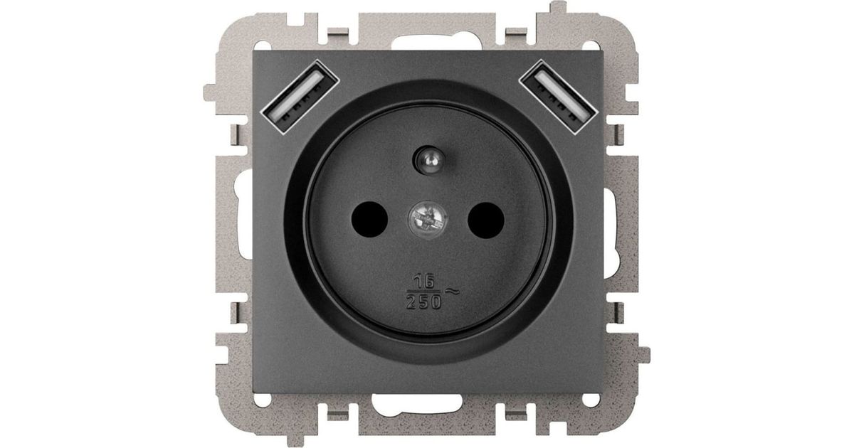 Elektro-Plast Vestra Socket 2P + Z 2xUSB power supply without frame, flush-mounted IP20 black 3888-19