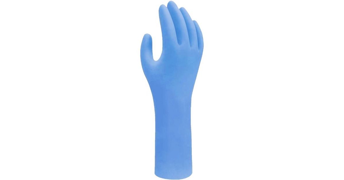 (EN) Protective glovesSHOWA 7545EBT, nitriil, ühekordseks kasutamiseks, mõõt: 9/L, 100tk, värv: sinine, kinnaste tekstureeritud sõrmeotsad, lateksi vaba, veekindel