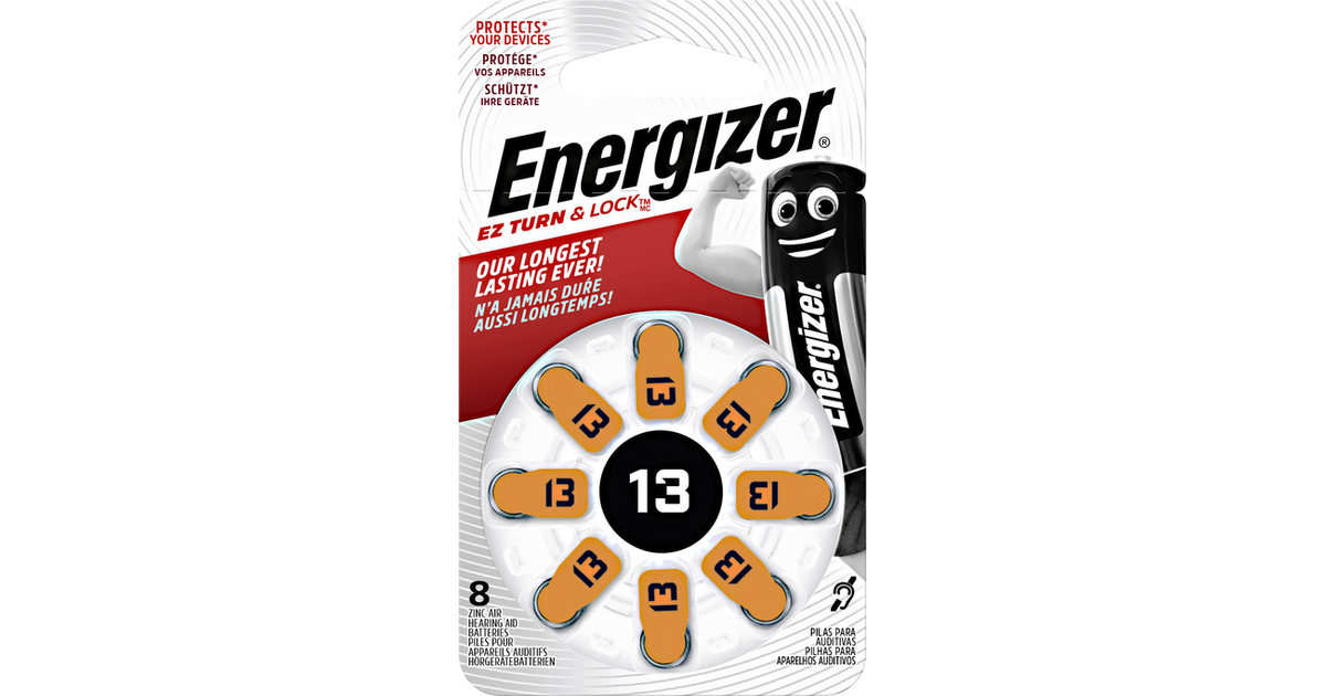 Energizer Hearing Aid Pr48 Button Cell Za 13 Zinc Air 280 Mah 1.4 V 8 Pc(S)