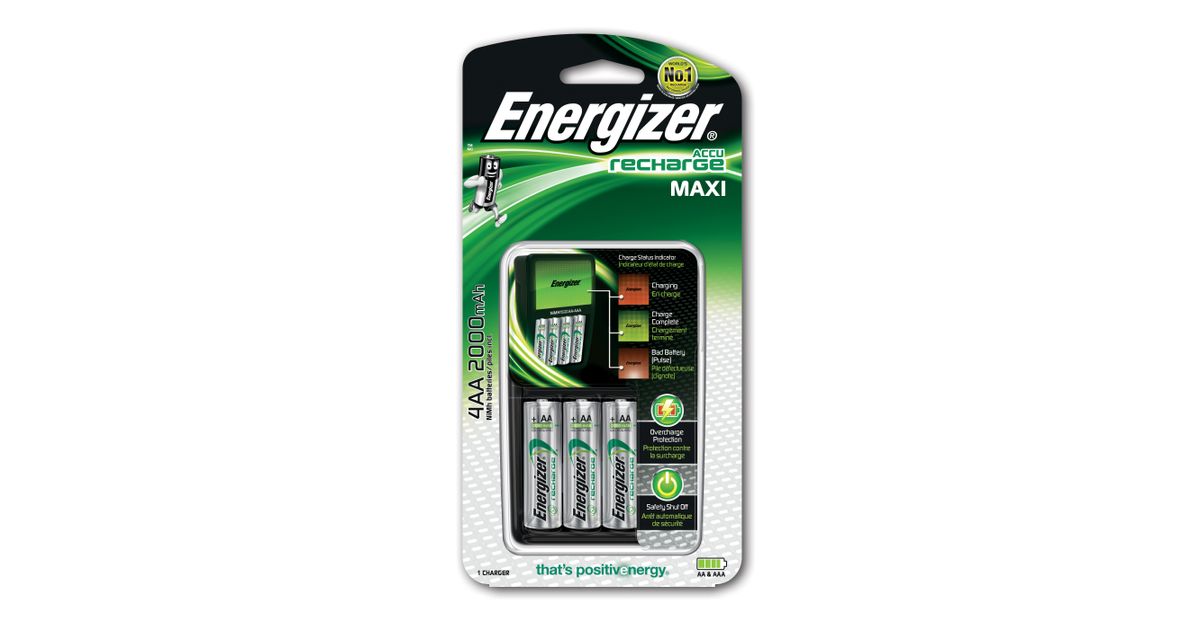 Energizer Maxi Charger, Nikkel-metallhüdriid (NiMH), Ülelaadimine, AA, AAA, 4 tk, Akud kaasa arvatud