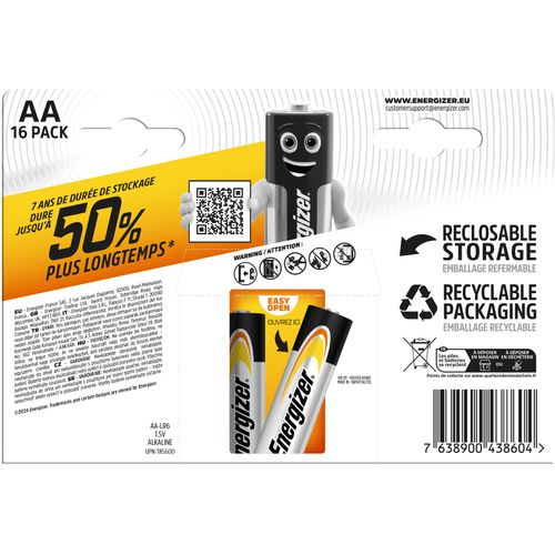 - Pikaealine jõudlus: iga Alkaline Power patarei säilitab oma energia kuni 7 aastat hoiustamisel – alati valmis kasutamiseks siis, kui seda vajad