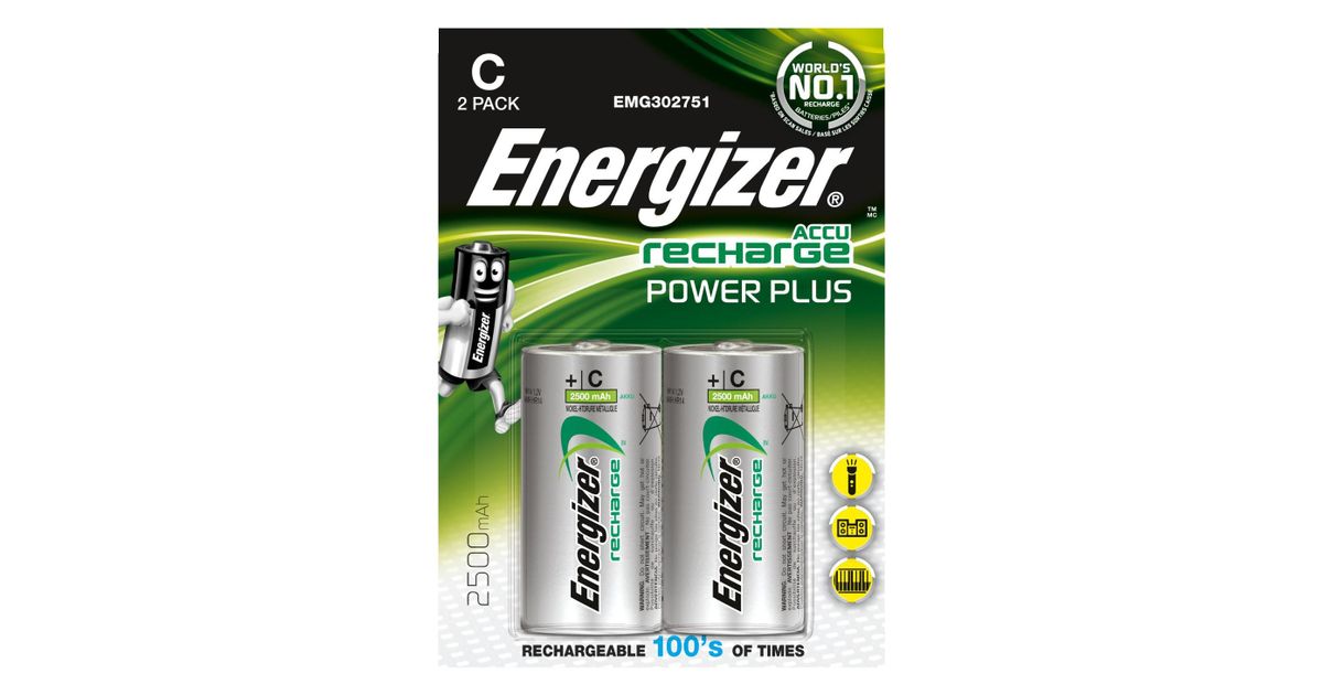 Energizer PowerPlus, Laaditav patarei, Nikkel-metallhüdriid (NiMH), 2 tk, 2500 mAh, Hõbe