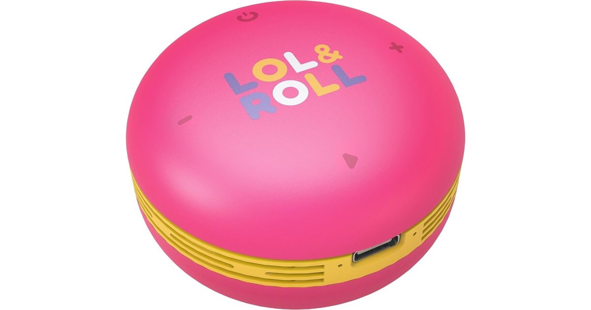 Portable mini speaker for kids with 85 dB volume limitation to protect their hearing. Bluetooth® 5.0 wireless technology lets you connect the speaker to your smartphone, tablet or other device, so your kids can enjoy music all the time. The Lol&Roll Pop Kids Speaker’s Music Share function lets you connect two mini speakers for kids to share their favourite music. And the fun doesn't stop there! They come with a cardboard character from the Lol&Roll band that will make their imaginations fly. This 5 W portable speaker will surprise you with its acoustic quality. Its lithium battery gives you up to 3 hours of music, and also makes the device super light and convenient to carry. The best companion for little ones! USB-C charging cable included. This mini kids’ speaker is designed for children to take anywhere thanks to its convenient size and carrying strap. You can easily hang it from your backpack or anywhere you like. The playback buttons are very easy to use. Fun guaranteed!