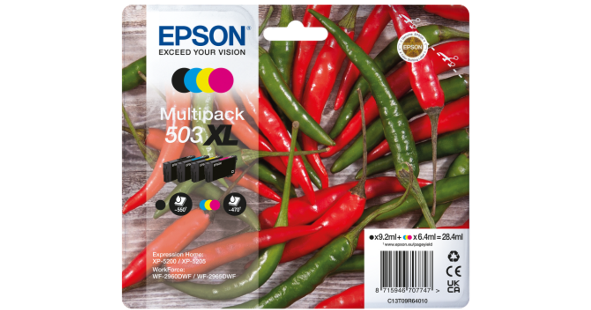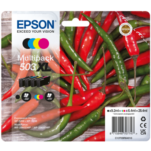 Epson 503XL, High (XL) Yield, 9,2 ml, 6,4 ml, 4 tk, Mitmikpakend