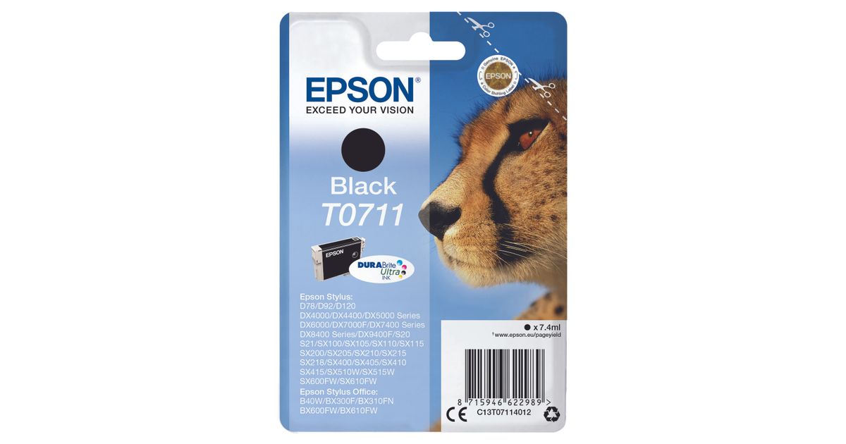 Epson Cheetah Singlepack Black T0711 DURABrite Ultra Ink tindikassett 1 tk Originaal Standard Yield Must